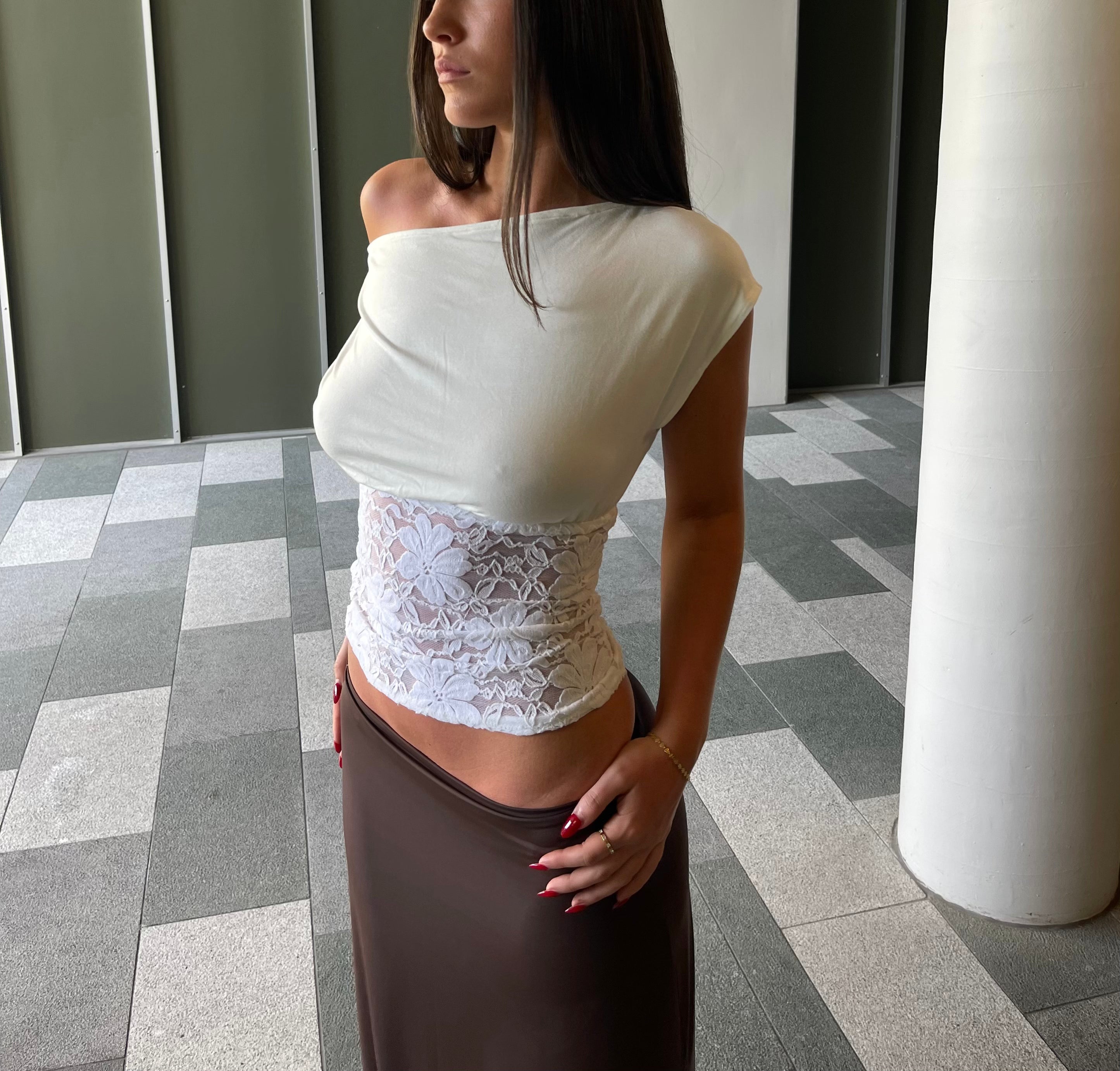 Lace Asymmetric Top Ivory
